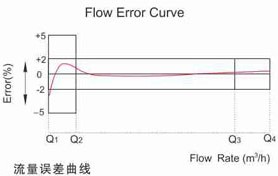 b、從包括分界流量(Q2)在內到包括過載流量(Q4)的高區中的更大允許誤差是±2%(熱水表±3%)